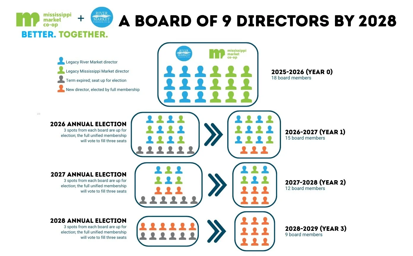 This proposal was jointly developed and unanimously approved by both the River Market and Mississippi Market boards – each made up of elected member-owners. But this isn’t a done deal. It’s a democratic process, and your vote will decide the outcome. We’re asking every member-owner to learn more and cast a ballot this fall.